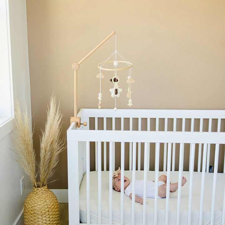 Perfect for hanging baby mobiles, plush toys, or sensory items, this wooden mobile arm blends safety, style, and functionality—making it a must-have for any modern nursery.